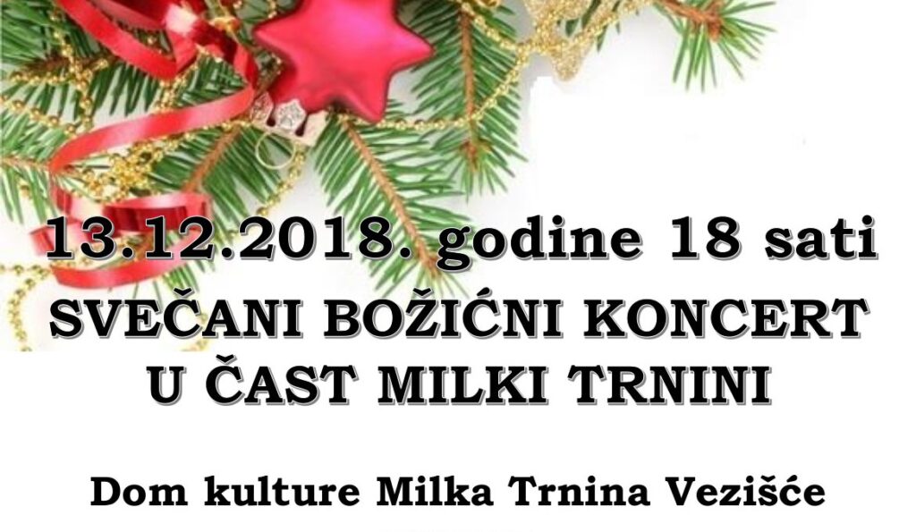 I ove godine Općina Križ u suradnji s Operom Hrvatskog narodnog kazališta iz Zagreba i Mjesnim odborom Vezišće, organizira Svečani božićni koncert u čast Milki Trnini. Koncert će se održati 13. prosinca 2018. godine (četvrtak) u 18 sati u Dom kulture Milka Trnina, Vezišće. Ulaz je slobodan za sve zainteresirane građane.