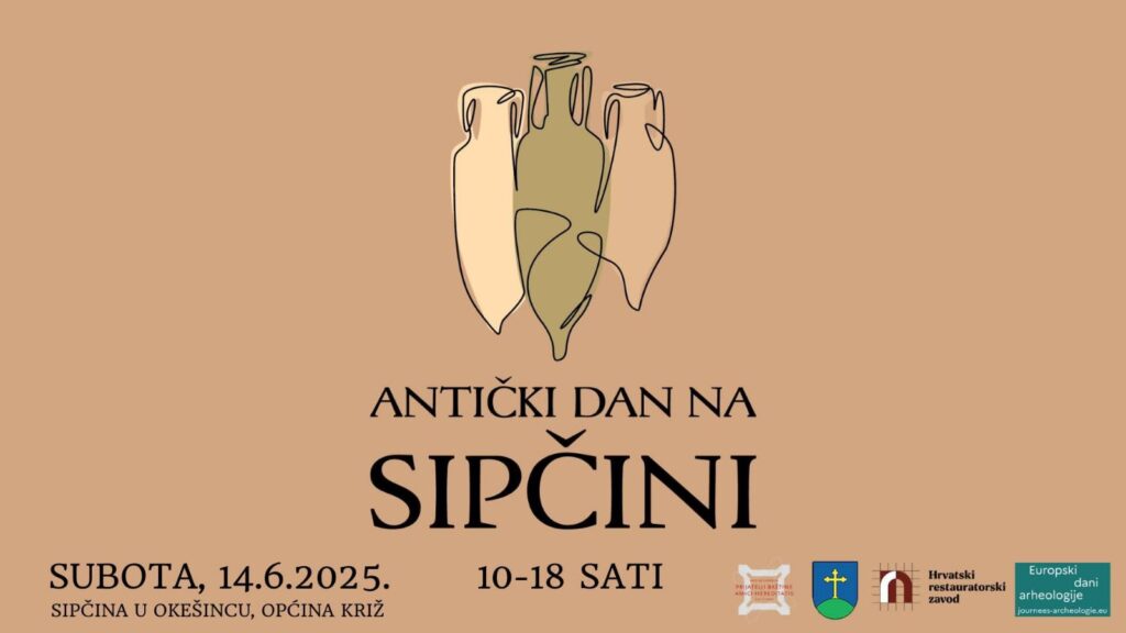 U sklopu Europskih dana arheologije 2025. godine, te financijaku potporu kroz realizaciju projekta javnih potreba u kulturi Općine Križ, Udruga Prijatelji baštine – Amici hereditatis, poziva vas da im se pridružite na manifestaciji „Antički dan na Sipčini“, jednodnevnom događanju posvećenom oživljavanju rimske kulture i to u subotu, 14. lipnja 2025. na arheološkom lokalitetu Sipčina u Okešincu, od 10:00 do 18:00 sati.