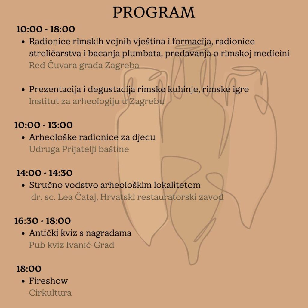 OD 10:00 DO 18:00 – Radionice rimskih vojnih vještina i formacija, radionice streličarstva i bacanja plumbata, predavanja o rimskoj medicini / Red Čuvara grada Zagreba