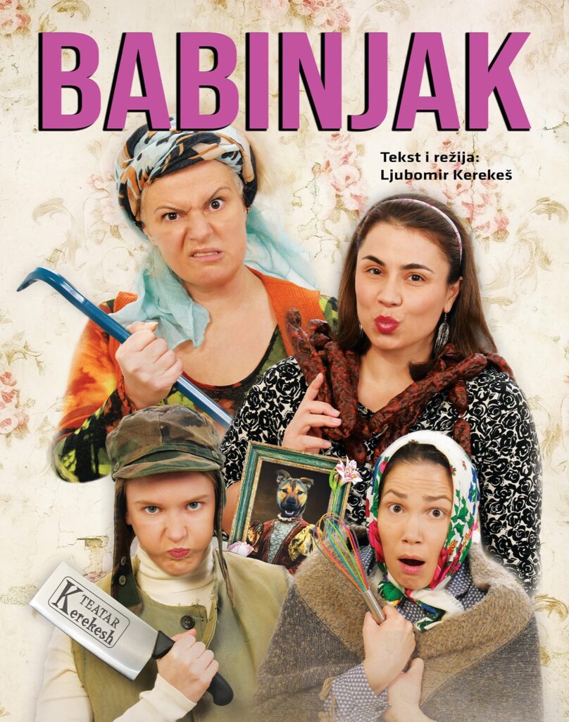 OPIS PREDSTAVE: “Babinjak” ne mora nužno biti trač partija ili razmjena recepata. U novoj predstavi Ljubomira Kerekeša, “Babinjak” čine Kata, Seka, Ružica i Boža, članice Udruge žena “Moramo” koje imaju puno većih problema od običnog uživanja u traču. Odlučne u svojoj nakani da opljačkaju lokalnu mesnicu jer im je bahati mesar prodao staro i pokvareno meso zbog kojega je smrtno stradao Katin pas, počinju pripreme za dugo očekivanu osvetu kako bi se konačno zauzele za sebe i pomogle u humanitarnoj akciji. Uz stalno preispitivanje svojih odluka i borbe sa strahom od neuspjeha ova predstava će govoriti o problemima nasilja nad ženama, o problemima etiketiranja i omalovažavanja žena u društvu, kao i o empatiji i međusobnoj pomoći koje danas u društvu ima sve manje. “Babinjak” okreće novu kazališnu stranicu Kerekesh Teatra.