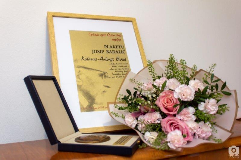 Jučer je u Galeriji Križ održan dio programa 34. Badalićevih dana, odnosno dodjele Plakete Josip Badalić, koju je ove godine Predsjednik Općinskog vijeća Općine Križ Zlatko Hrastić, u ime Općinskog vijeća dodijelio Katarini-Antoniji Boras, najboljoj studentici ruskog jezika i književnosti Filozofskog fakulteta u Zagrebu.