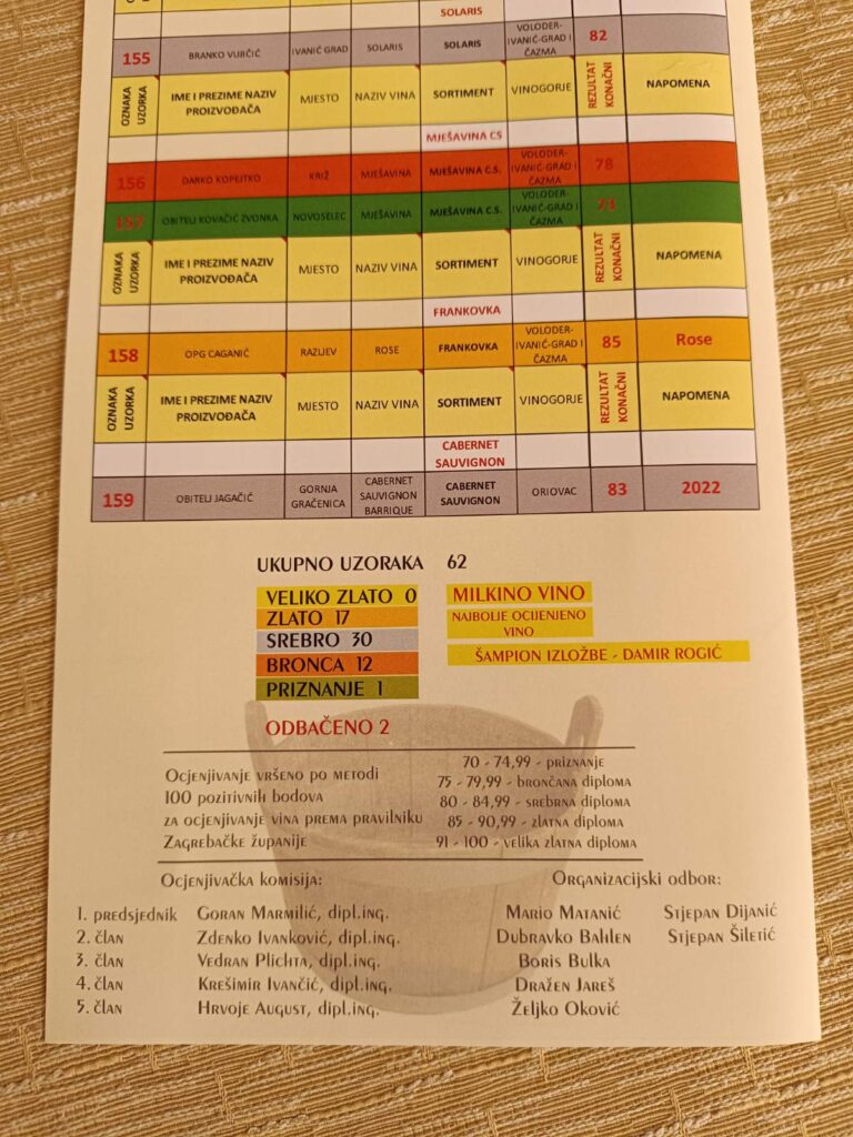 Ove godine počasni naziv Milkino vino osvojio je chardonnay obitelji Gorić iz Gornjeg Prnjarovca. Ukupno najbolje ocijenjeno vino je škrlet, Tihomira Tkalčića iz Caginca, a šampion izložbe je Damir Rogić iz Donjeg Prnjarovca.