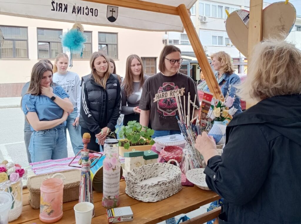 Učenici  Opće Gimnazije Križ su se pridružili obilježavanju Dana planeta Zemlje na dva načina. Jedna grupa učenika je kreativno radila na recikliranju tekstila, a druga grupa je aktivno sudjelovala na štandu Udruge ŽENSKE RUKE i pridonijela podizanju ekološkog osvješćivanja naših sugrađana i svih zainteresiranih prolaznika u Zagrebačkoj br. 2 ovog lijepog sunčanog utorka, a istom prilikom smo dijelili prigodne brošure na temu recikliranja tekstila, plastike, stiropora i papira kao i prigodne kemijske olovke.“