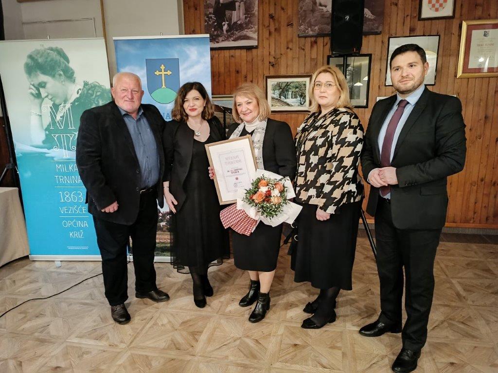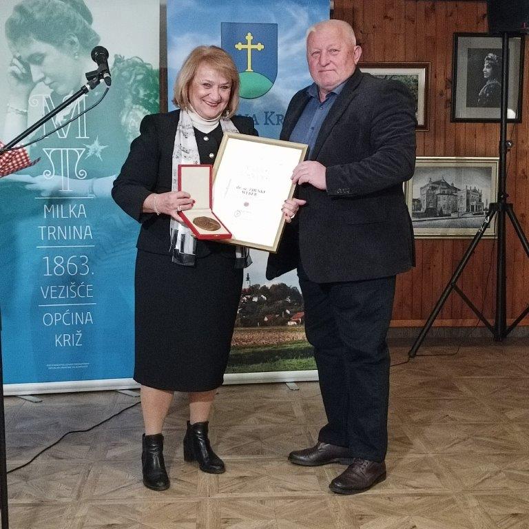 Na svečanom božićnom koncertu u Vezišću dodjeljuje se i Plaketa Milke Trnine. Naime, Općina Križ u spomen na Milku Trninu već gotovo jedno desetljeće dodjeljuje posebno počasno priznanje – Plaketu Milke Trnine. Temeljem Javnog poziva za dodjelu Plakete Milke Trnine i dostavljenih prijedloga, ove godine članovi Općinskog vijeća Općine Križ na 16. sjednici održanoj 08. prosinca 2022. godine, jednoglasno su odlučili da se Plaketa Milke Trnine kao posebno počasno priznanje za zahvalnost i istaknuti doprinos promicanju kulturne ostavštine imena i djela Milke Trnine u Hrvatskoj i svijetu dodijeljeni dr. sc. Zdenki Weber. Gospođa Weber jedna je od inicijatora ali i urednica prve sveobuhvatne monografije Milke Trnine koju je izradila Općine Križ. Zdenka Weber iskreno živi i ljubi glazbu te s ponosom okuplja i prenosi znanja o umjetničkoj veličini i ostavštini Milke Trnine. Ove godine obilježila je 50 godina pisanja, odnosno rada vezanog uz glazbu.