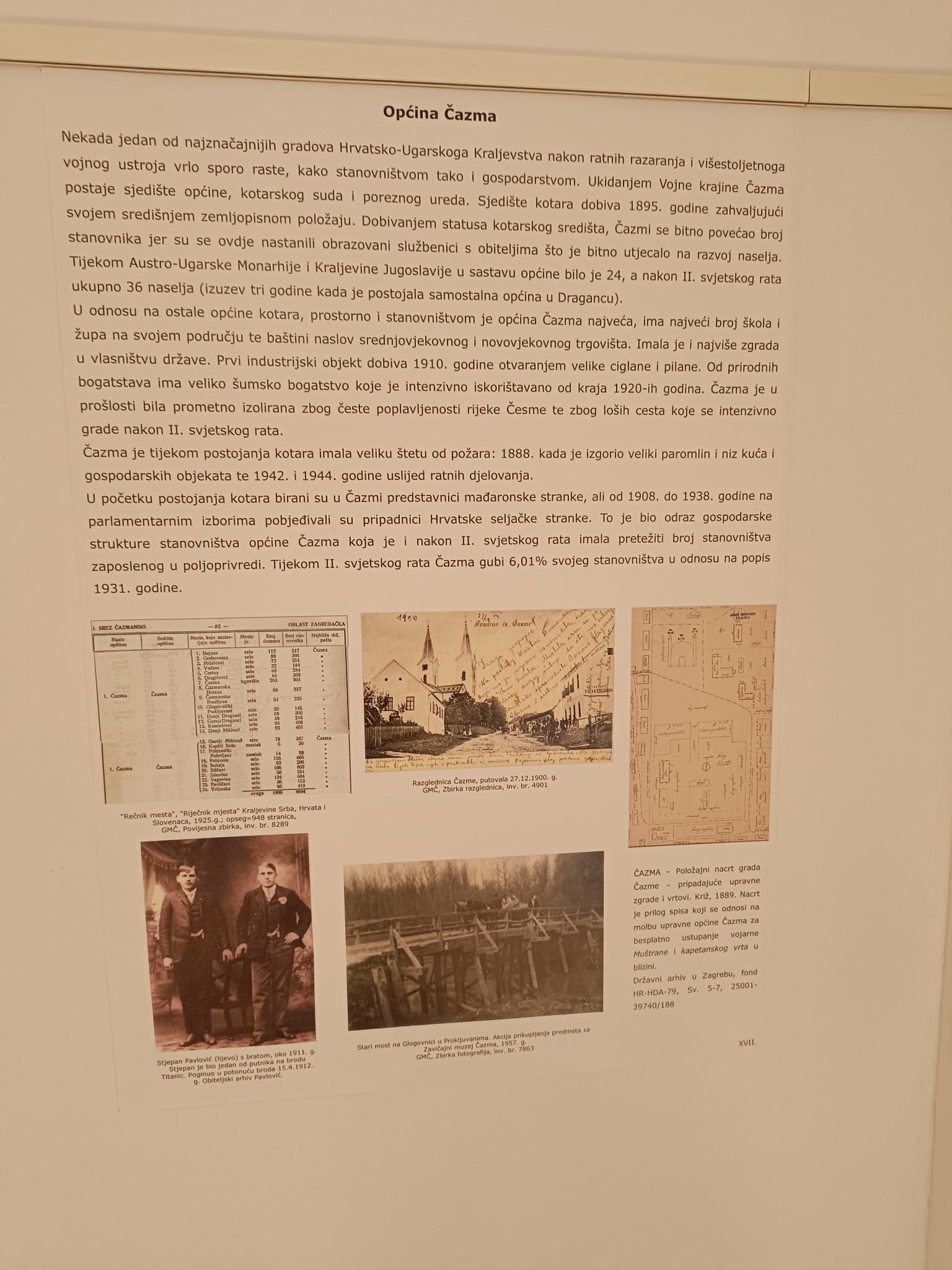 O svemu tome, ali i mnogo više, posjetitelji jučerašnje izložbe mogli su vidjeti na izloženoj povijesnoj dokumentaciji te čuti od autorica izložbe i ravnateljice Gradskog muzeja Čazma Maje Cepetić Rogić. Općinski načelnik Marko Magdić izrazio je zadovoljstvo dolaskom izložbe u Križ te istaknuo kako je povijest dokaz da administrativne granice ne razdvajaju već da naš Moslavački kraj spaja ne samo prijateljstvo već i bogata povijest, a u budućnosti nada se još mnogo toga.