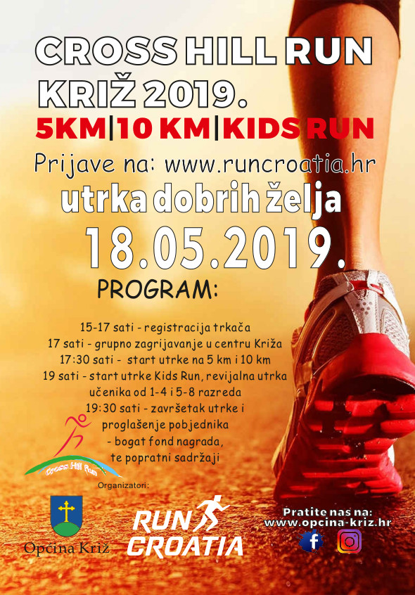Organizatori utrke su Run Croatia j.d.o.o. i Općina Križ. U želji da potiče aktivan život i sport kroz manifestaciju čiji su središnji događaj tri utrke kroz atraktivan brdovit zeleni krajolik, Općina Križ i ove godine kreće u organizaciju treće po redu, još bolje trkačke utrke Cross hill run Križ 2019. – Utrke dobrih želja, powered by Run Croatia.