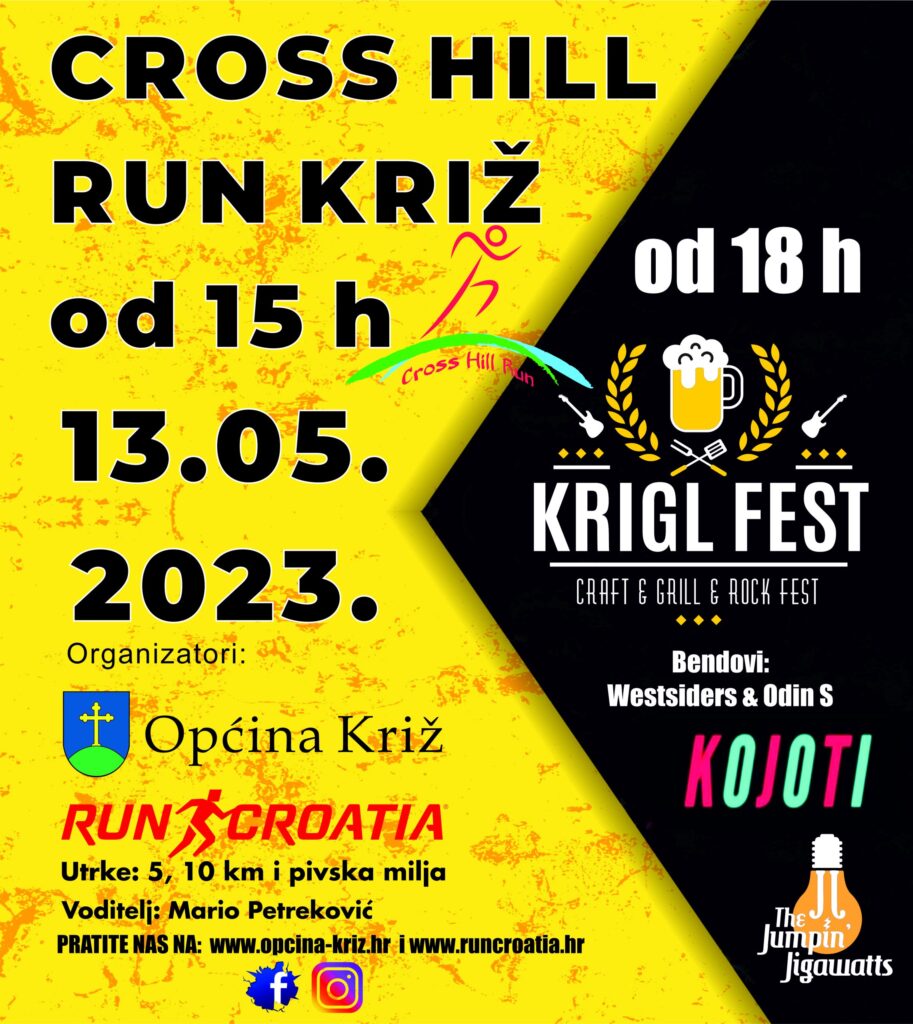 Iako nam vrijeme ovog proljeća ne ide u prilog, dobre zabave i atmosfere neće nedostajati na ovogodišnjem CROSS HILL RUN & KRIGL FESTU na kojem očekujemo pravi glazbeni spektakl i guštiranje u okusima vrhunskih craft piva. Zato ponesite kišobrane (za svaki slučaj) a za Krigl fest smo osigurali šator neće biti na livadi u centru Križa radi kiše već na parkiralištu u parku kod prodajnog platoa iza Župne crkve Uzvišenja Sv. Križa.