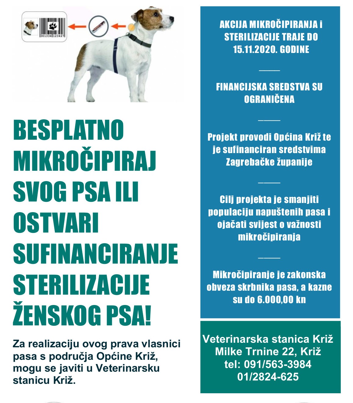 BESPLATNO MIKROČIPIRANJE I SUFINANCIRANJE STERILIZACIJE PASA ZA GRAĐANE OPĆINE KRIŽ