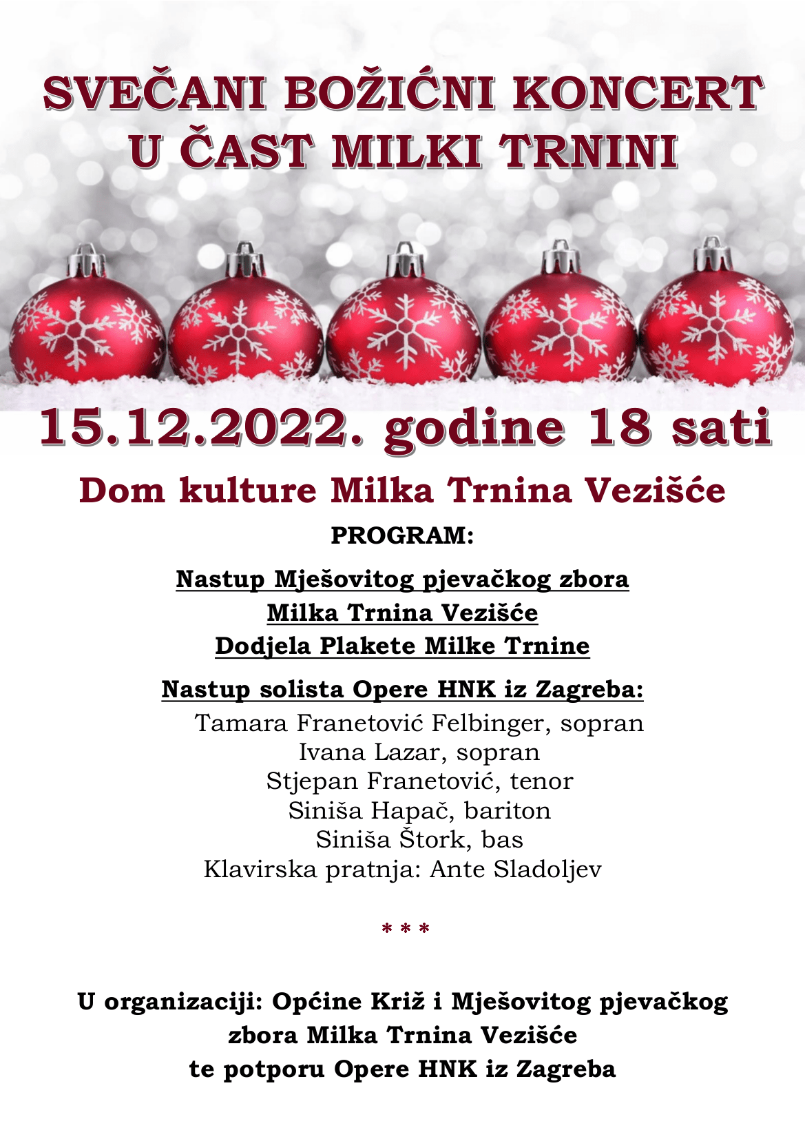 Nakon svečanog božićnog koncerta u Vezišću te koncerta Limene glazbe DVD-a Križ, ove su nedjelje, posljednje adventske nedjelje uoči Božića, Općina Križ i njene vrijedne udruge, organizirale veselo adventsko druženje. S početkom svete mise u 9,00 sati 18. prosinca...