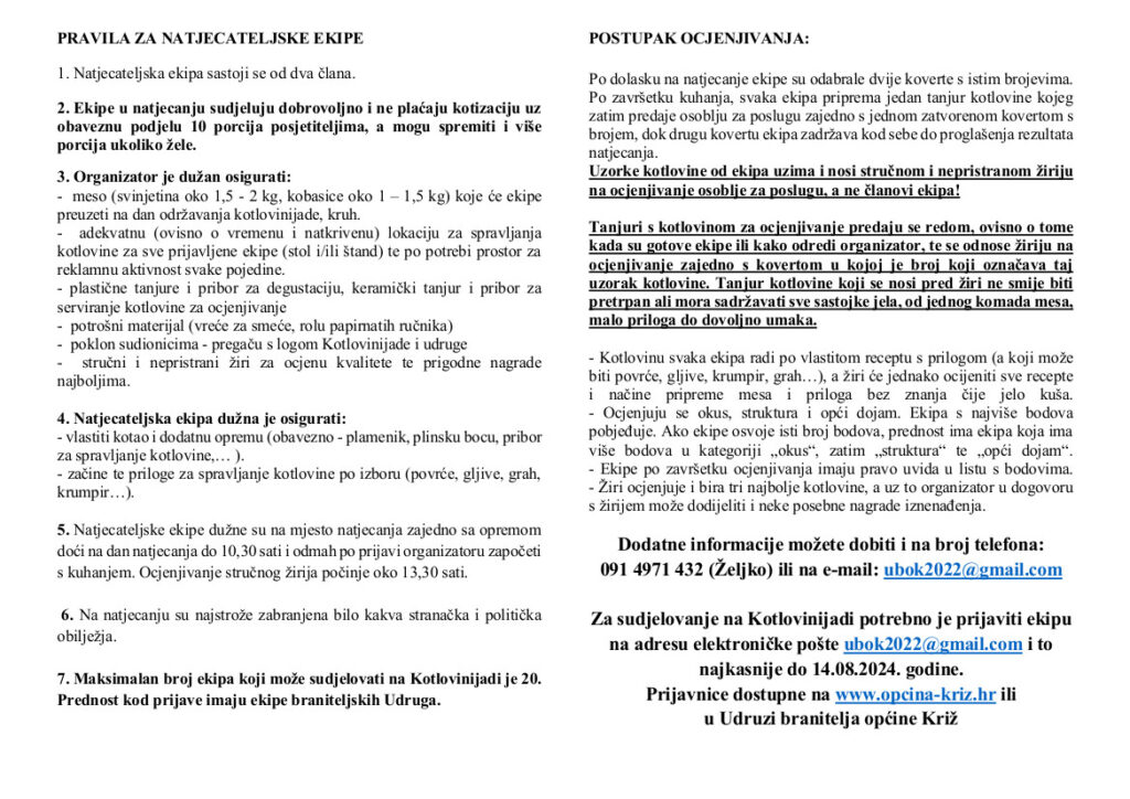 Prijavnice dostupne na www.opcina-kriz.hr ili u Udruzi branitelja Općine Križ.