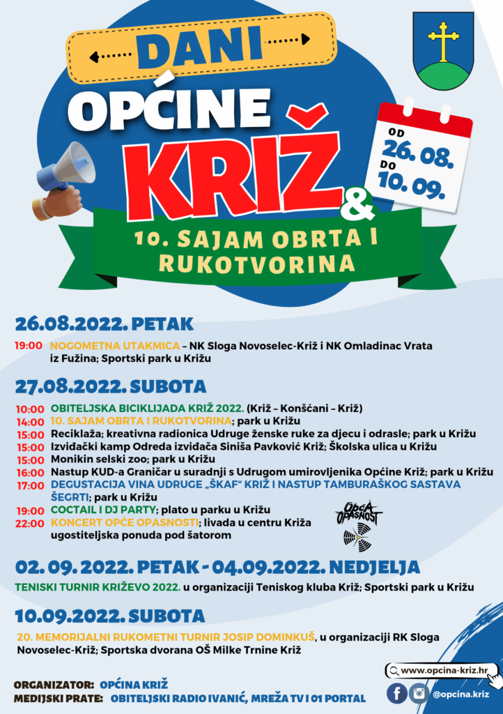 DANI OPĆINE KRIŽ 2022. GODINE I 10. SAJAM OBRTA I RUKOTVORINA
