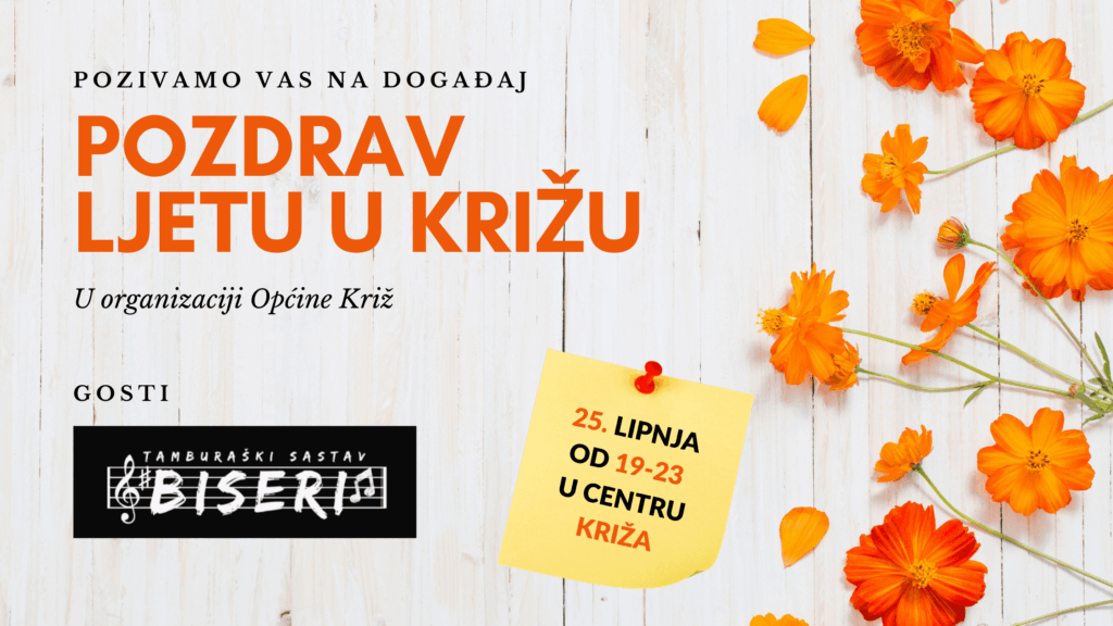 U petak 25. lipnja od 19 do 23 sata u centru Križa, na prodajnom platou u parku, Općina Križ organizira događaj pod nazivom Pozdrav ljetu u Križu.