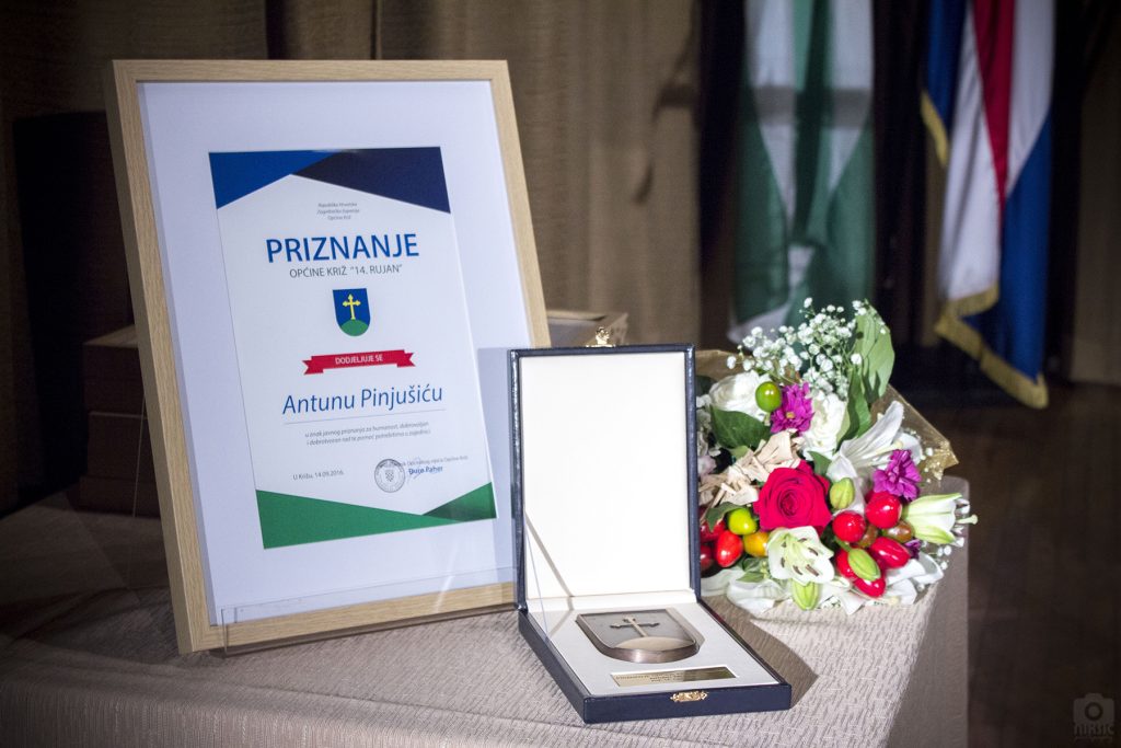 Dana 13. rujna 2016. godine Općinsko vijeće Općine Križ donijelo je Odluku o dodjeli Priznanja Općine Križ „14. rujan“ : ANTUNU PINJUŠIĆU, u znak javnog priznanja za humanost, dobrovoljan i dobrotvoran rad te pomoć potrebitima u zajednici.