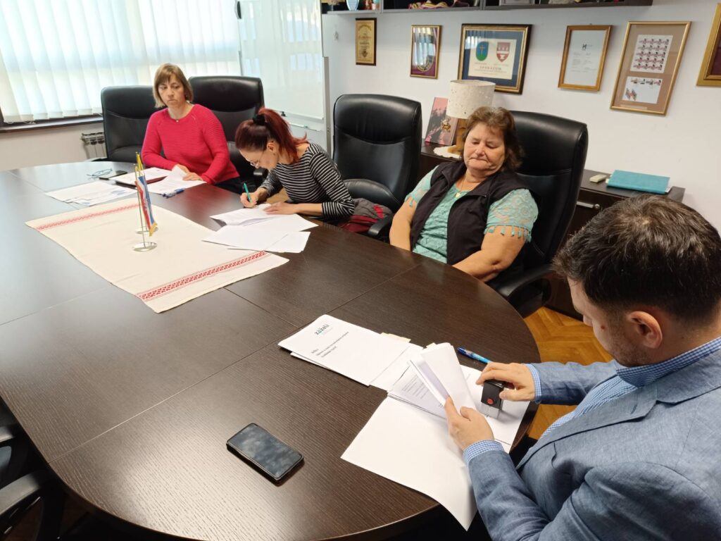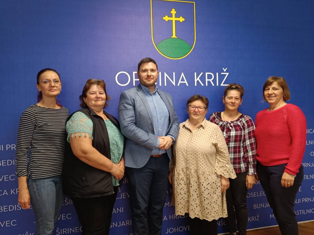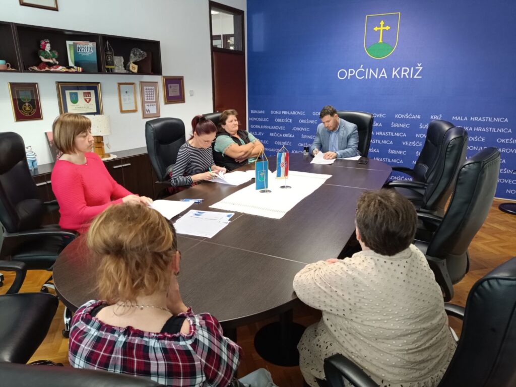 Četiri zaposlene žene u projektu „Zaželi jednakost za sve!“ danas su potpisale ugovore o radu u EU projektu „Zaželi“ Ministarstva rada, mirovinskog sustava, obitelji i socijalne politike, s Općinskim načelnikom Općine Križ Markom Magdićem.